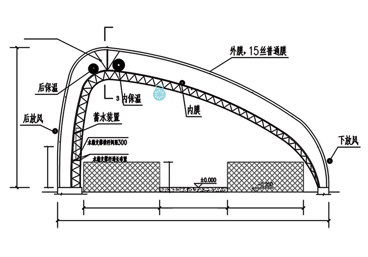 新型陽光養(yǎng)殖棚舍系列產(chǎn)品剖面圖