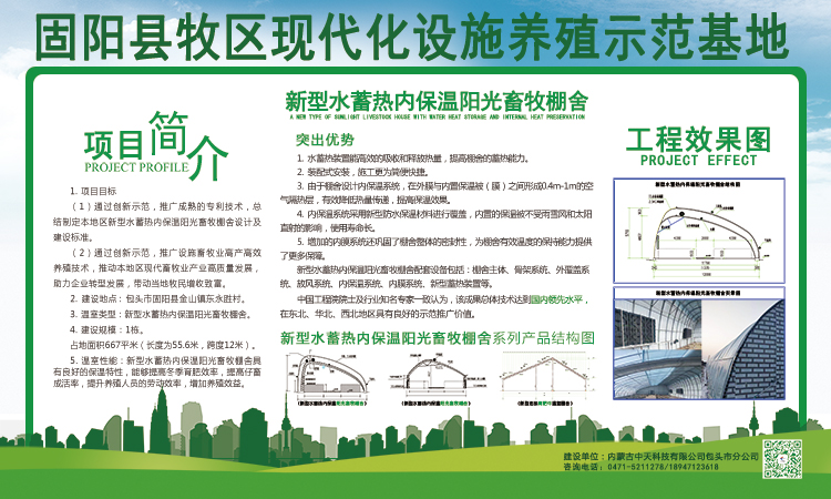 為促進本地區(qū)畜牧業(yè)產(chǎn)業(yè)高質(zhì)量發(fā)展,2020年包頭市固陽縣農(nóng)牧局主要領(lǐng)導(dǎo)及相關(guān)部門負責(zé)人通過實地調(diào)研、認真考察正式引進“新型陽光養(yǎng)殖棚舍”專利集成技術(shù)及產(chǎn)品,建設(shè)固陽縣牧區(qū)現(xiàn)代化設(shè)施養(yǎng)殖示范基地,項目于2020年12月15日順利通過驗收并正式投入運營,該項目將實現(xiàn)以下主要目標(biāo):