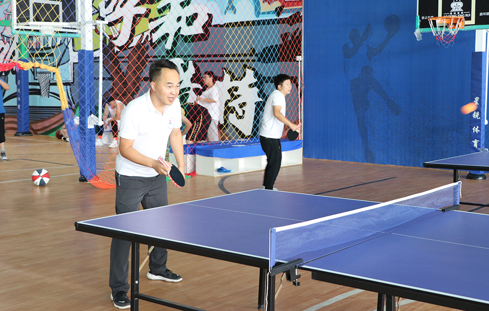 大米健身體育館內,以籃球、乒乓球、羽毛球三球為主的球類比賽拉開了本次拓展活動的帷幕。賽場上,隊員們酣暢淋漓;賽場外,拉拉隊員們喊聲嘹亮??此埔粓龊唵蔚那蝾惐荣悾瑹o不體現著全體員工的凝聚力,這場比賽不僅強健了體魄,而且給員工們提供了一個交流情感的機會,促使日后的團隊合作更上一層樓。